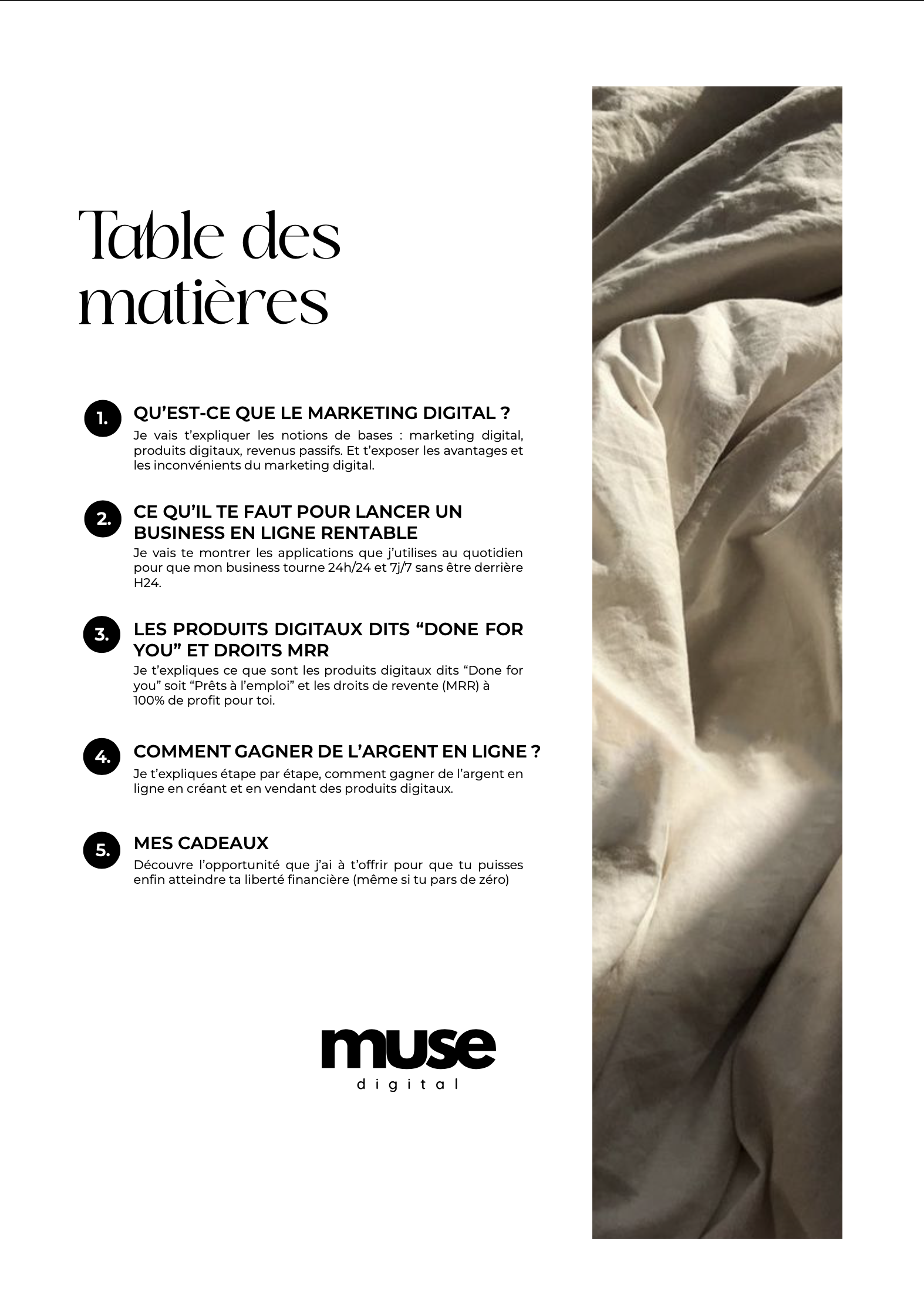Je t'ai mis le sommaire de mon ebook pour que tu puisses voir par toi-même ce qui t'attend !